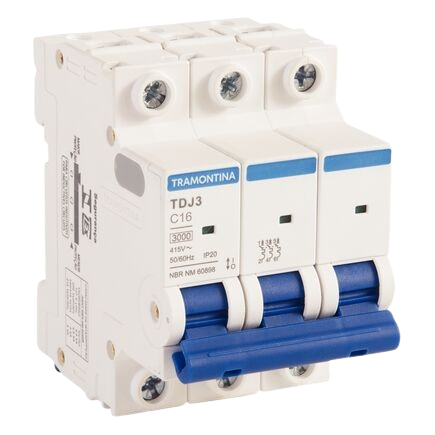 O Disjuntor Tripolar 16A Curva C da Tramontina (Ref. 58013105) é ideal para proteção de circuitos trifásicos, interrompendo automaticamente a corrente em casos de sobrecarga ou curto-circuito. Com uma corrente nominal de 16A e curva de disparo C, ele é indicado para cargas com picos de corrente, como motores, garantindo segurança nas instalações elétricas residenciais e industriais. Fabricado conforme as normas NBR NM 60898, o disjuntor oferece alta capacidade de interrupção de 3 kA, sendo capaz de atuar em circuitos de até 441V. Sua instalação é facilitada pela montagem em trilho DIN, tornando-o uma solução prática e eficiente para sistemas elétricos que exigem proteção robusta e confiável.