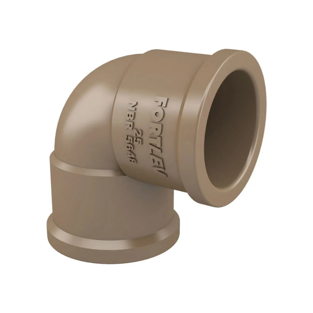Muito mais cuidado com a água. O Sistema Predial de Água Fria Fortlev apresenta um conjunto de tubulações e conexões, cuidadosamente desenvolvidas conforme norma ABNT NBR 5648, para conduzir água potável à temperatura ambiente até os pontos de utilização. O Joelho 90° Soldável Fortlev realiza mudança de direção da tubulação soldável de água fria em ângulo de 90°. Fabricados em PVC na cor marrom, suportam até 7,5Kgf/cm² ou 75 m.c.a. à temperatura de 20°C.