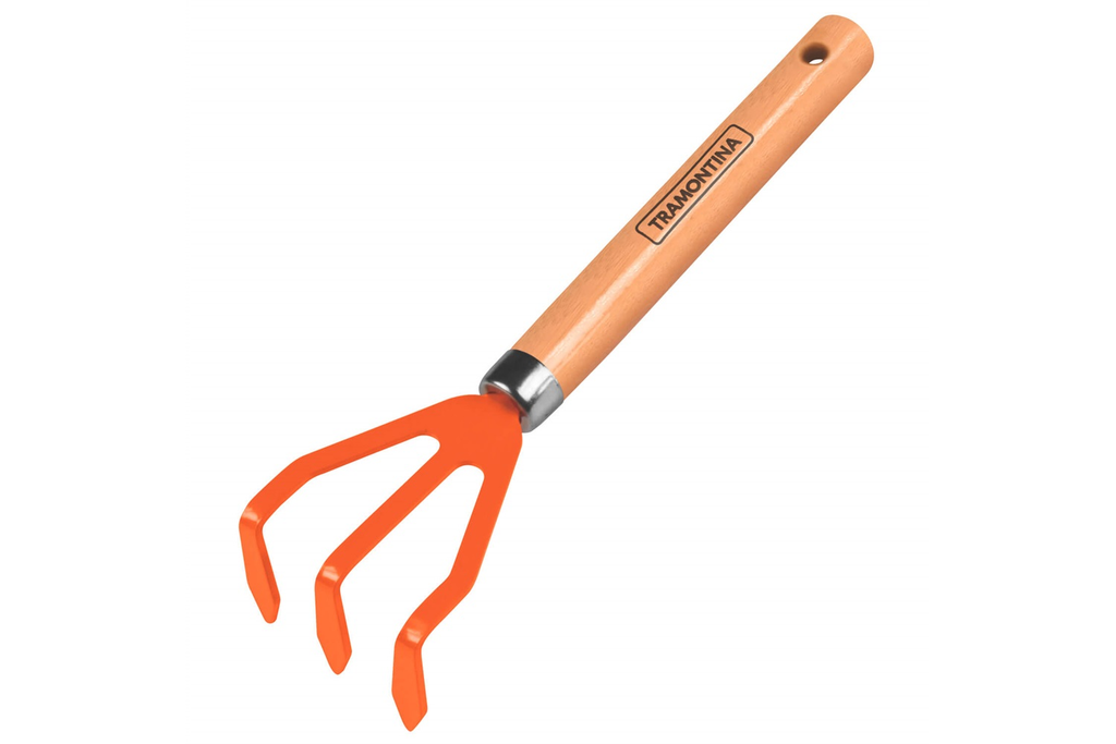 Descrição, O Ancinho de 3 Dentes com Cabo de Madeira Laranja da Tramontina é peça essencial no cultivo da jardinagem e atividades agrícolas domésticas., É recomendado para arar, preparar e remover detritos da terra e sua produção em aço carbono dá resistência e durabilidade à peça.Fundada em 1911, a Tramontina é reconhecida como referência de qualidade em mais de 120 países. Sua marca se apoia na inovação, no design e na tecnologia, com produtos que vão da sua cozinha, como utensílios domésticos, a sua garagem e caixa de ferramentas, como ferramentas para jardinagem e ferramentas manuais de uso profissional e hobby. São produtos de alta qualidade e durabilidade, com designs inovadores e funcionais.