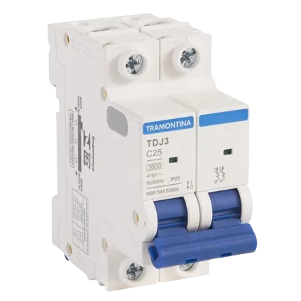 O Disjuntor Bipolar 25A Curva C da Tramontina é projetado para proteger circuitos elétricos contra sobrecargas e curtos-circuitos, garantindo a segurança das instalações. Com corrente nominal de 25 amperes e curva de disparo tipo C, é ideal para circuitos com cargas indutivas moderadas, como iluminação e pequenos motores. Sua capacidade de interrupção é de 3kA, adequada para aplicações residenciais e comerciais de pequeno porte.​ Este disjuntor possui montagem simplificada em trilho DIN de 35 mm, facilitando a instalação em quadros de distribuição padrão. Além disso, conta com uma janela de inspeção que permite verificar o estado operacional do dispositivo, proporcionando maior praticidade na manutenção e monitoramento do sistema elétrico.