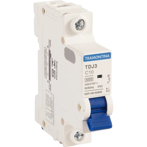 O Minidisjuntor Unipolar 10A Curva C Tramontina é indicado para a proteção de circuitos monofásicos contra sobrecargas e curtos-circuitos. Com corrente nominal de 10 amperes e curva de disparo tipo C, é ideal para aplicações com cargas levemente indutivas, como circuitos de iluminação e pequenos motores, oferecendo segurança e eficiência em instalações residenciais e comerciais. Fabricado em termoplástico de alta resistência, suporta tensões de até 415V, com frequência de 50/60 Hz e capacidade de interrupção de 3 kA. Possui visor indicativo de status e instalação fácil por encaixe em trilho DIN. O produto segue os padrões da norma NBR NM 60898, garantindo confiabilidade, durabilidade e proteção adequada para o sistema elétrico.